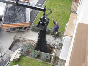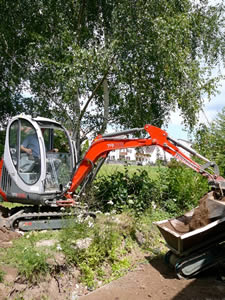 Erd- und Abbrucharbeiten gehören meist zum Gartenbau. Durch enge Zuwege, die nur mit Schubkarre per Hand zu meistern sind, erhöhen sich hier oftmals die Kosten. Wir bieten Ihnen durch Einsatz von Förderbändern schnelle Entsorgung Ihrer "alten" Materialien und genauso gute Anlieferung neuer Materialien. Auch unser kleiner wendiger Bagger leistet große Dienste, wenn er durch das Gartentor passt.